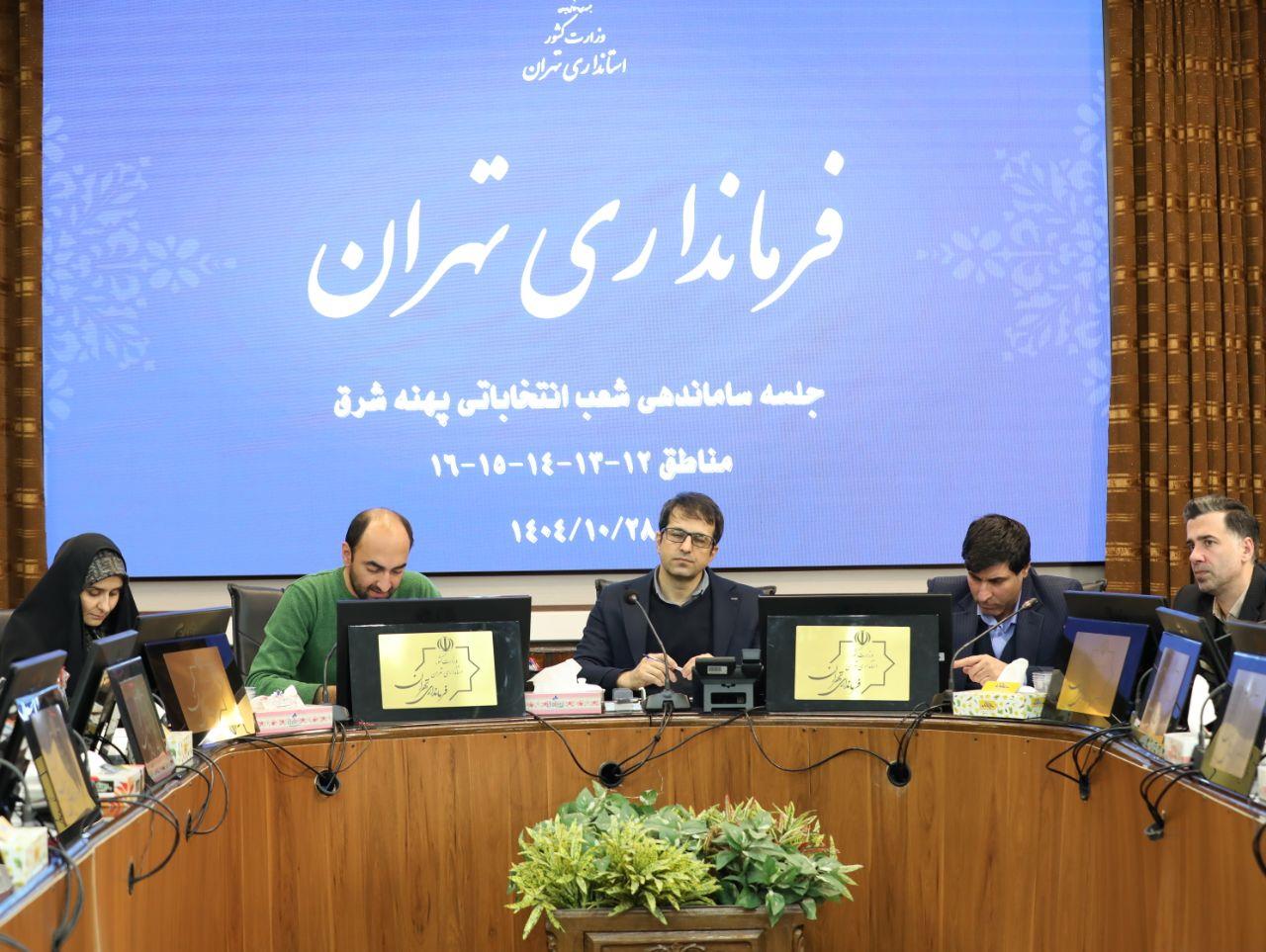 به گزارش روابط عمومی فرمانداری تهران، جلسه ستاد انتخابات شهرستان با هدف بررسی و ساماندهی شعب اخذ رأی هفتمین دوره انتخابات شورای اسلامی شهر و روستا و اولین میاندورهای ششمین دوره مجلس خبرگان رهبری، به ریاست کامبیز کریمی معاون سیاسی اجتماعی فرماندار و رئیس ستاد انتخابات شهرستان و با حضور جانشین و مسئولان کمیته ساماندهی شعب در مناطق ۱۲، ۱۳، ۱۴، ۱۵ و ۱۶ آموزش و پرورش در محدوده پهنه شرقی، در محل سالن جلسات فرمانداری برگزار شد.